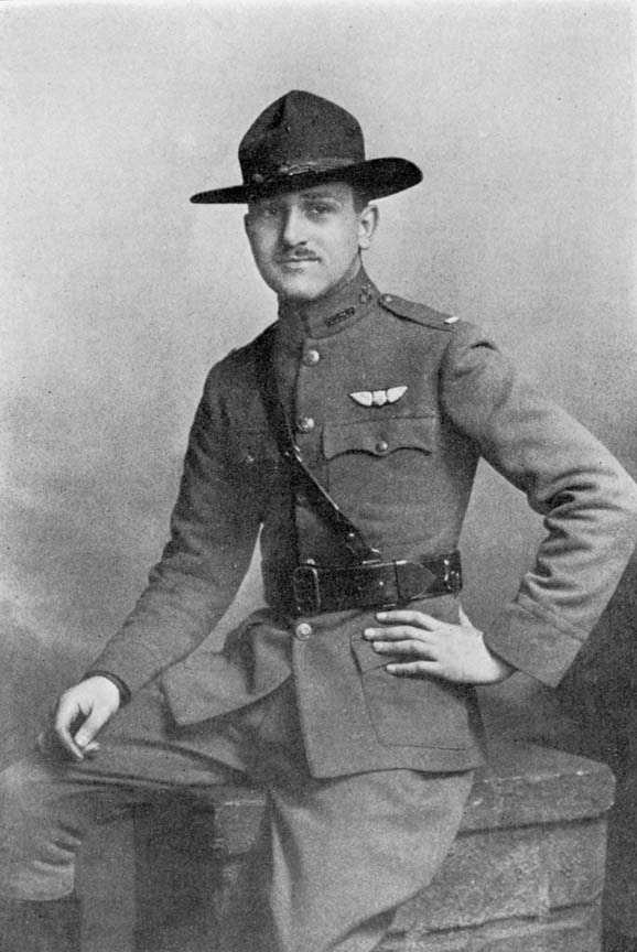 In the spring of 1917 he endeavored to enlist in the U.S. Naval Aviation, but was rejected because he was under weight. In Aug., 1917, he joined the Royal Flying Corps in Boston, Mass., and proceeded to Toronto, Can., where he was trained as pilot. In Nov., 1917, he was transferred to Taliaferro Field, Fort Worth, Tex., where he completed a course in aerial gunnery. On Dec. 18, 1917, he was commissioned 2d Lieut., R.F.C., and given an appointment as Flying Instructor at the School of Aerial Gunnery in Texas. From that date until April he trained British and American cadets in aerial gunnery. On April 1, 1918, he was commissioned 1st Lieut., R.A.F., and assigned to the Aerial Fighting School at Beamsville, Ontario, Can., as Instructor. In July, 1918, he was appointed Flight Commander of B Flight No. 1, Aerial Fighting Squadron, which he instructed until Oct. 1. From the time of his appointment as instructor up to Oct. 1, he made over 1500 flights and carried over 800 cadets without accident.