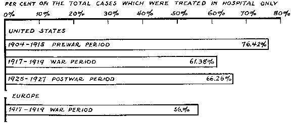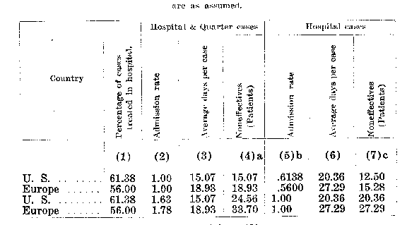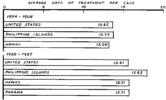 Average days of treatment per case in the United States and Europe during the World War (April 1917 -- December 1919). |