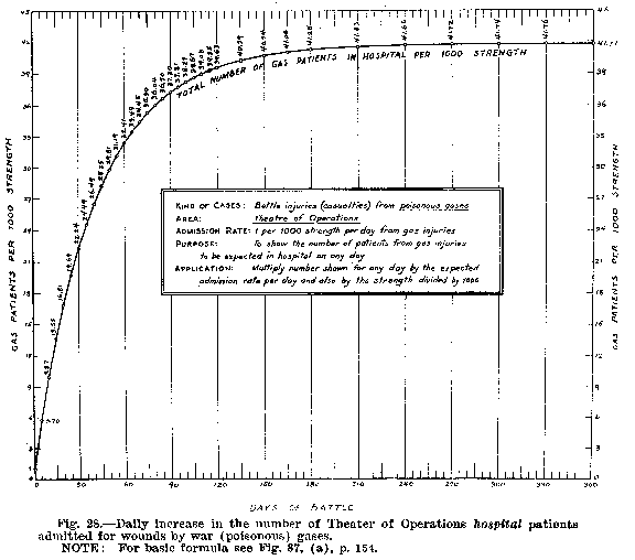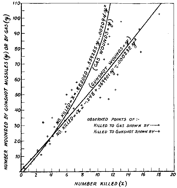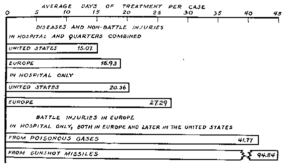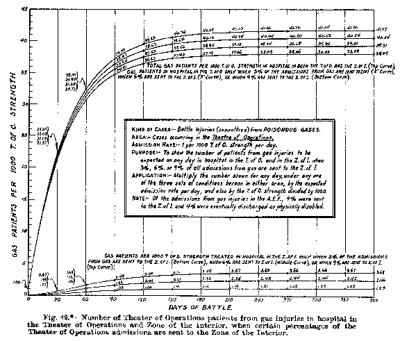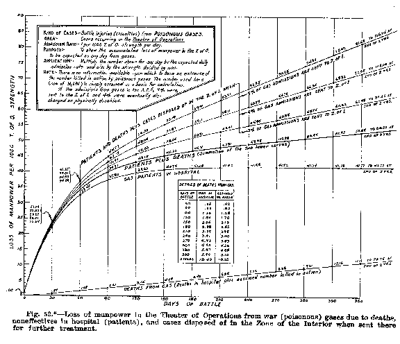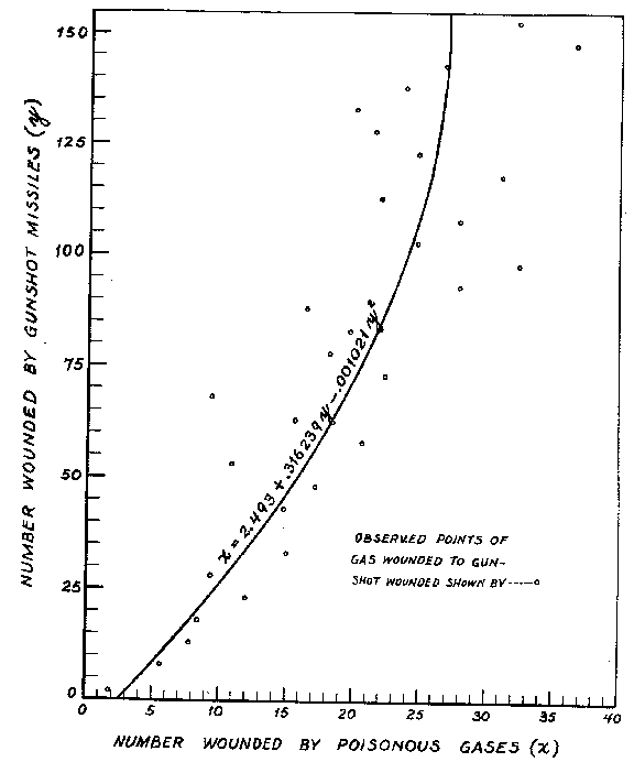 Relationship of the number wounded by poisonous gases to those wounded by gunshot missiles. |