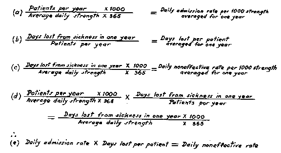 The relation of the noneffective rate to the average daily admission rate and the average clays lost per patient. |