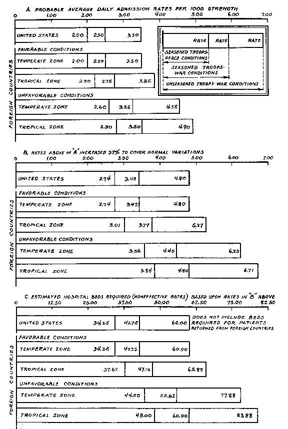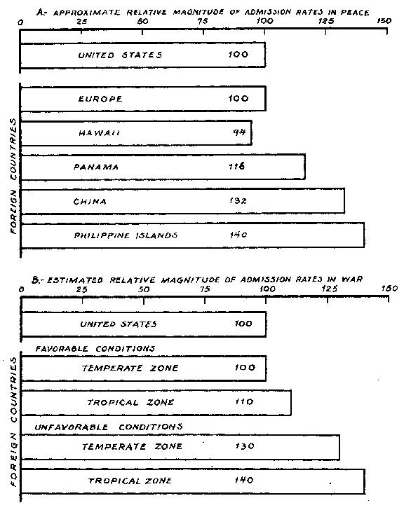 B. Also the estimated relative magnitude of such rates in war in different climates under favorable and unfavorable conditions. |