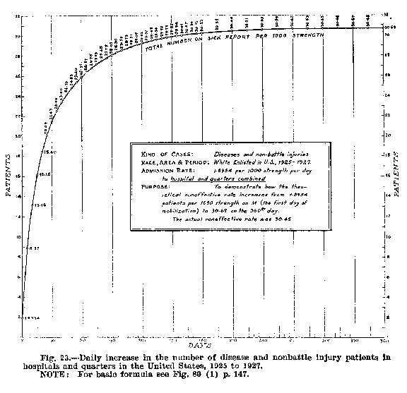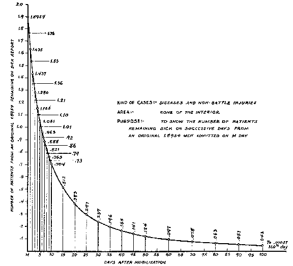 Duration of treatment (remaining in hospital) of disease and nonbattle injury cases as they occur in the United States. |