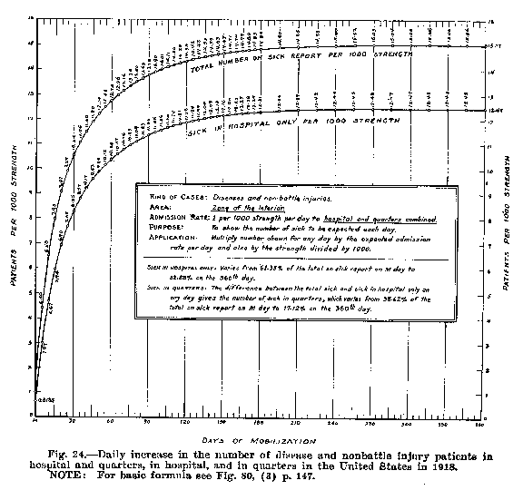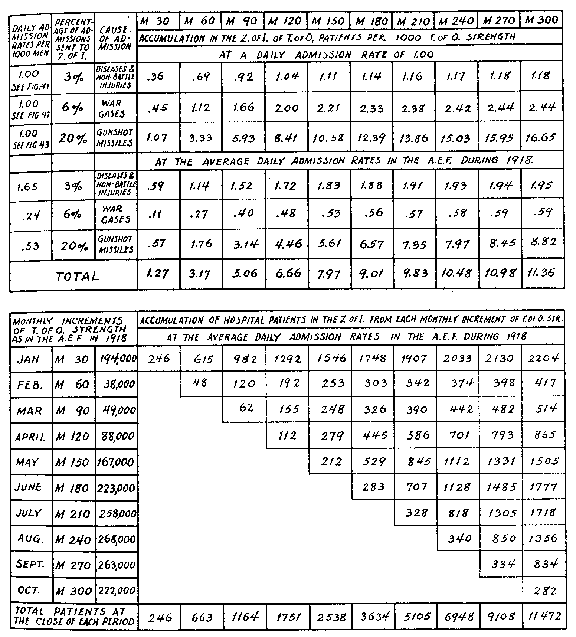 Method of computing the total hospital patients to be expected in a Theater of Operations command under approximately the same conditions as there were in the American Expeditionary Forces in 1918. |