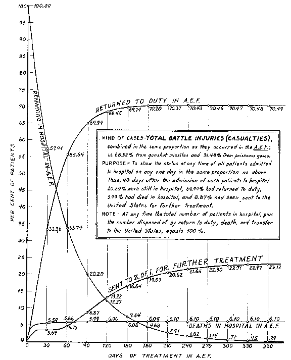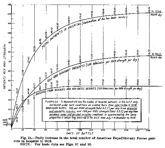 Daily increase in the number of battle injury cases in hospital in the American Expeditionary Forces in 1918. |