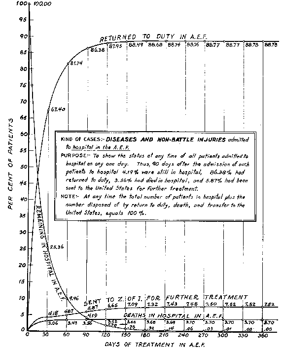 Continuous change in the status of hospital patients, while in the American Expeditionary Forces, admitted for all causes and in the same proportions as in the American Expeditionary Forces. |