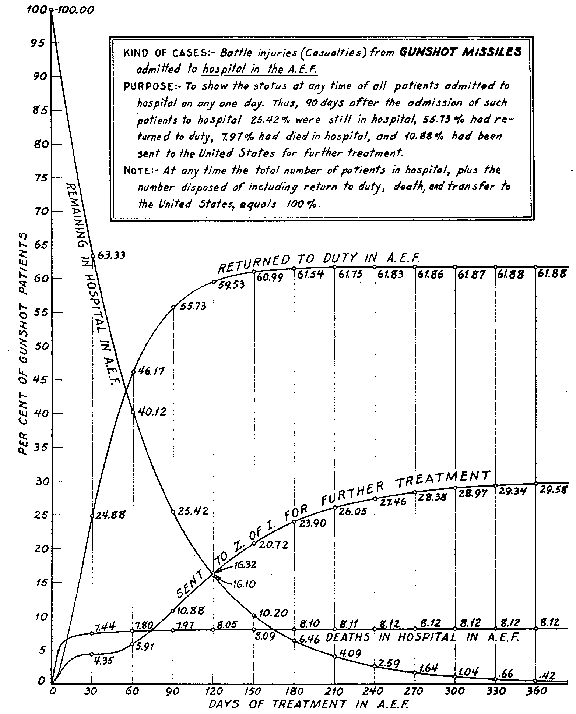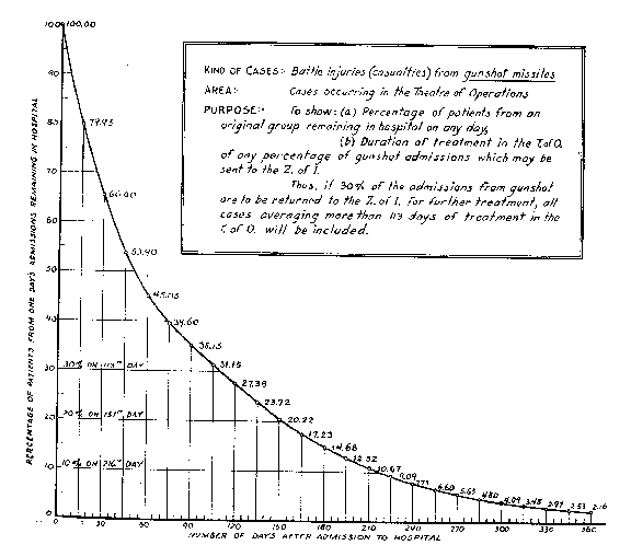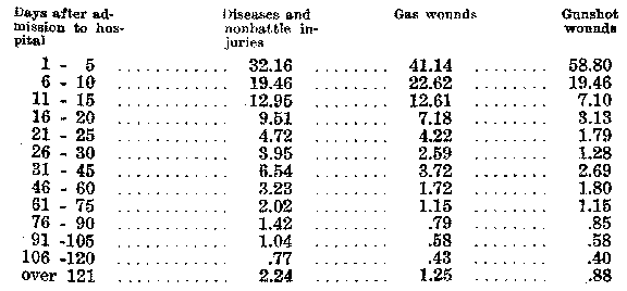 Duration of treatment of Gunshot patients admitted to hospital in the American Expeditionary Forces in 1918, who ultimately died. |