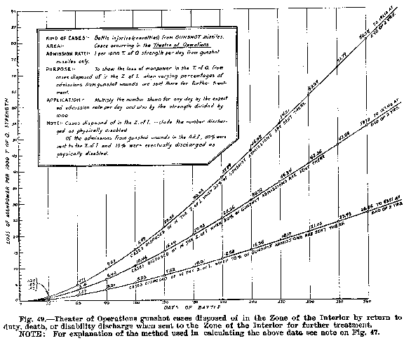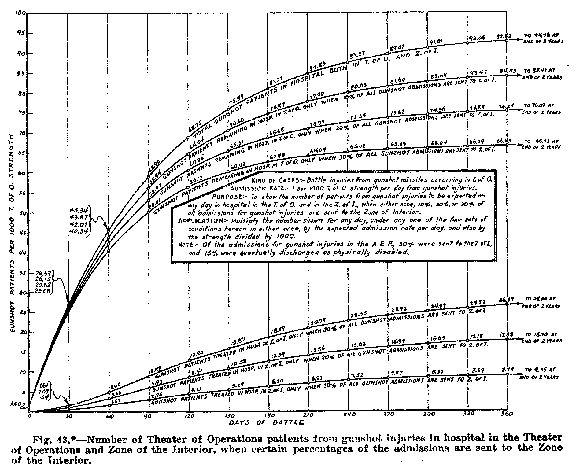 Duration of treatment both in the Theater of Operations and Zone of the interior of Theater of Operations gunshot patients. |