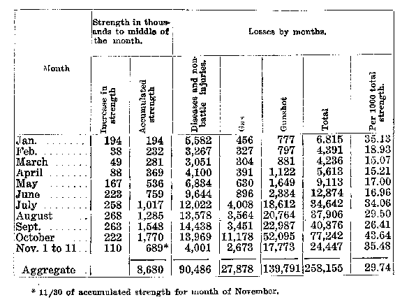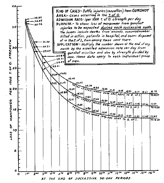 Loss of manpower from gunshot injuries in the Theater of Operations during successive months. |