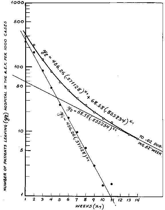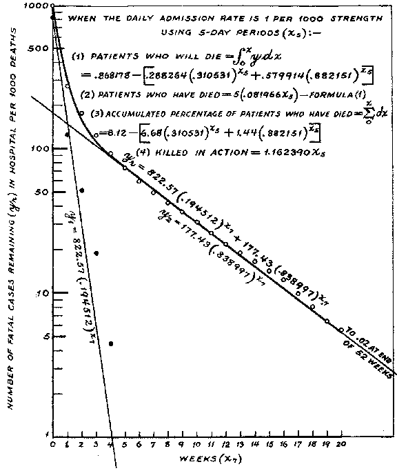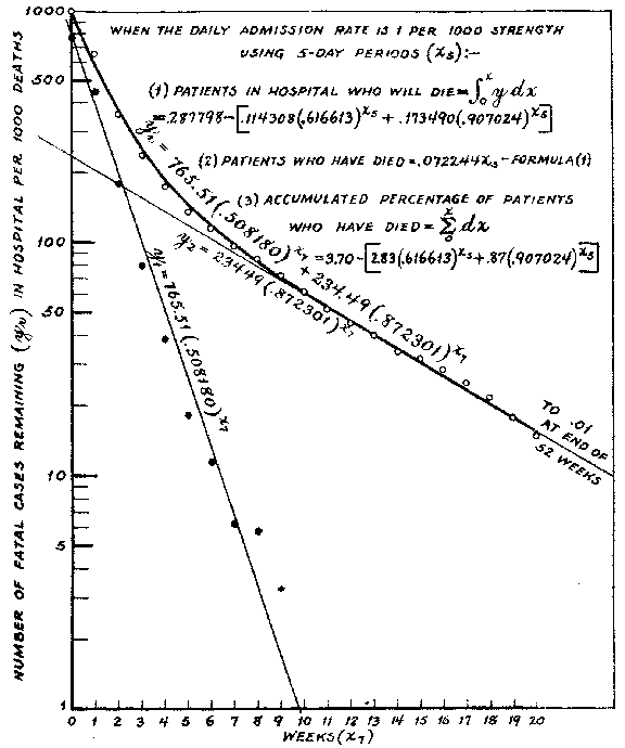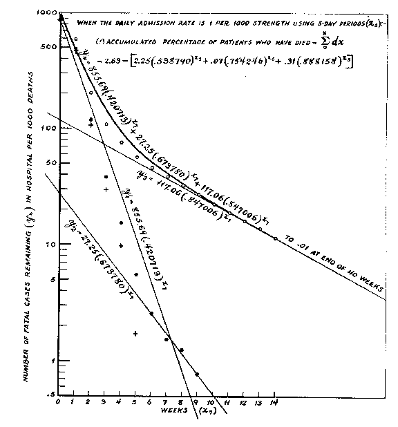 Method of finding the eventually fatal gassed cases in hospital at the end of ten days among those that die in ten days or less, when the daily admission rate from the group is 1.00 |
