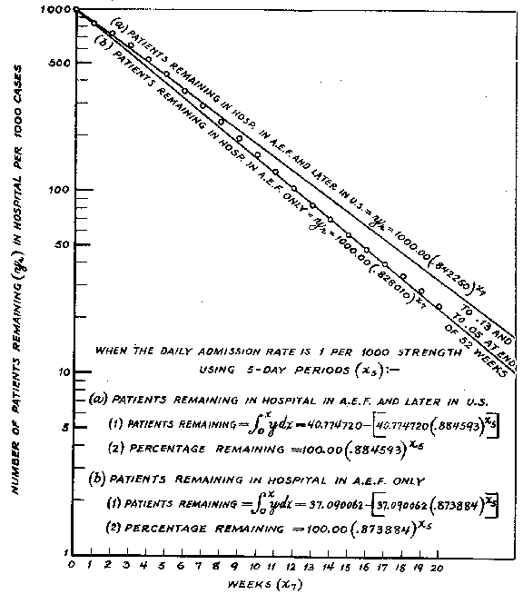 Duration of treatment (remaining in hospital) in the American Expeditionary Forces and later in the United States of disease and nonbattle injury cases which occurred in the American Expeditionary Forces in 1918. |