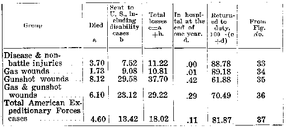 Continuous change in the status of gas and gunshot patients while in the American Expeditionary Forces combined in the same proportion as they occurred there. |