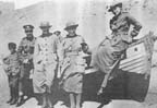 About noon we arrived in Blackpool and as we stepped from the train we were confronted by a British military band. As we finished detraining they struck up the "Star-spangled Banner." It is doubtful if there was a man present who could say that it didn't bring a lump to his throat. It was a touch of America three thousand miles from home. As we snapped down our salute, as the last note of the music died away, the order to fall in was given and then squads right, so, with colors unfurled and headed by the band, we made our entrance into Blackpool, England. The streets were crowded on either side and we were accorded a fine welcome as we marched to our quarters on Albert Road.