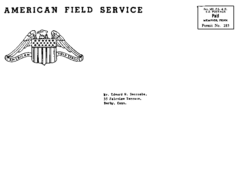 Mr. Samuel Paul writes that he likes the AFS letters, which is certainly nice to hear. Mr. Paul has the responsibility of running a defense plant in Philadelphia which is on a 24 hour working basis. (Old AFS?)