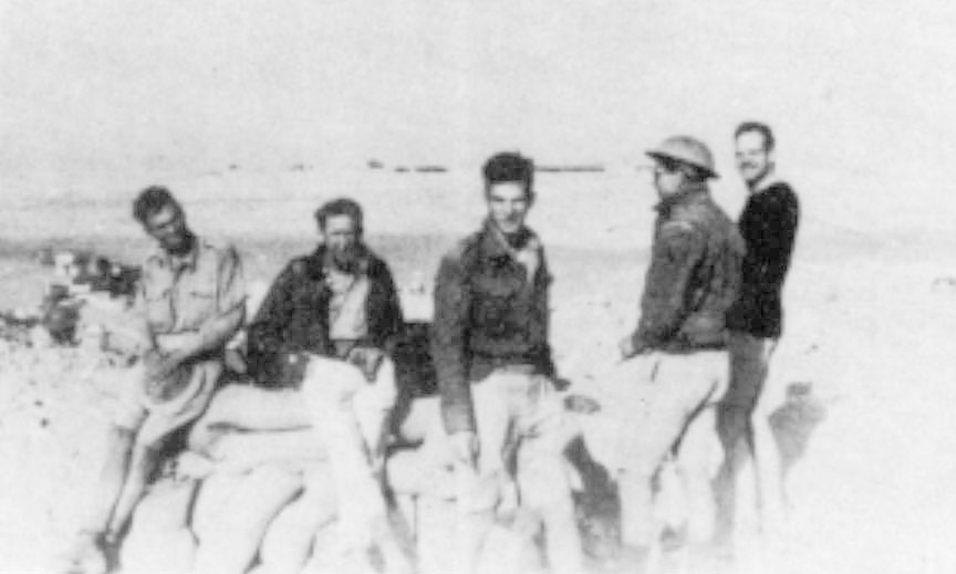 "You would be amused at me bouncing along, windshield raised (part of it is painted to keep down reflections the enemy might notice), goggles plunked across my nose, topee down around my ears to void off the sand, which literally fills the floor, twisting higher and yon avoiding waddies, pulling up long escarpments, slithering through traffic, like Michigan Blvd's. Water at camp is rationed, so I bring some from town. Recently I stopped in at a lonely oil and water pipe line yard to ask for a helve to my pick. A Major and a Captain and their dog 'Whiskey' welcomed me with a beer and treated me to a good dinner. They like to talk with Americans, and told some rare stories of their respective 23 and 11 years here. Both were to study American oil methods, when the war came. I provided some conversation which they evidently wanted in the worst way. They were not snobbish, in the least, and worked from dawn to dark. I hope Stalin is right about the Germans being through in '42. I'd rather believe him than Whitaker. Some of the boys are raring for action, and some, who've been through Tobruk, would like to return, but I am not particularly anxious to go up, but will of course, if the Service requires me. That's what we're here for, and now I feel that even though I'm tired when I finish, it is worth it, helping. I still believe I must act constructively and maybe, by the end of my year there will be a place for me to do this work, or photography, or camouflage. I hope so. 'Time' and 'Life' wrote us up and photographed our post, but I was absent on a run, and so did not participate in this choice nonsense."