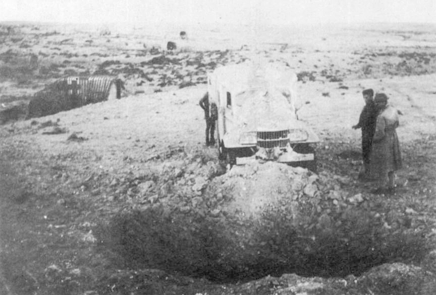 "They hit the rear end of the truck that was our first aid post a direct hit, and why the thing didn't catch fire, I can't guess. Or why, failing that, the shell didn't anyway get B. who was lying in the pit under the body of the truck. All the rest of the outfit except myself were lying in slit trenches within a few feet of it. The most amazing thing how no one was hurt.