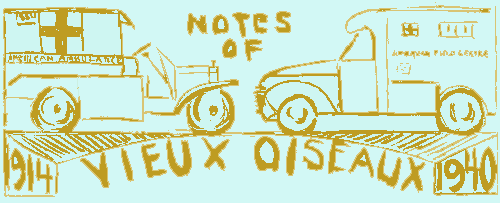 | June 1942 | Unit 11 was torpedoed in the Atlantic, rescued in three different groups, and brought on different dates to different ports. All were unhurt except for sunburn and exposure. AFS Letters inaugurated the Vieux Oiseaux page and through it has brought the Service into contact with many former members. Units 12, 13, 14, 15, 16 and 17 sailed --- 131 men. |