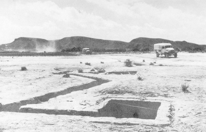 Although such an attack is over before I can do much about it, I go through the inevitable motions. I jumped into the nearest hole and threw my face against the sand until the storm blew over. There were only three or four other occupants with the same idea.