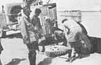 Few of us will forget the first day when every other truck stalled within the first 15 miles for some reason or other, and Carleton Richmond and Johnny Carotenuto banged their spanners in disgust for they thought they'd never see the convoy at that rate. Wally Lovelace dropped out to get petrol and returned too late to catch the speeding trucks, and after an hour-and-a-half of driving at break-neck speed without sight of his comrades decided that he was lost. A friendly MP, American Military Police, and a call to Cairo; lost again, then redirected,--- and finally breathlessly, tired, and frightened he arrived at the bridge a few minutes before the convoy crossed the Suez and rolled into camp on the other side.