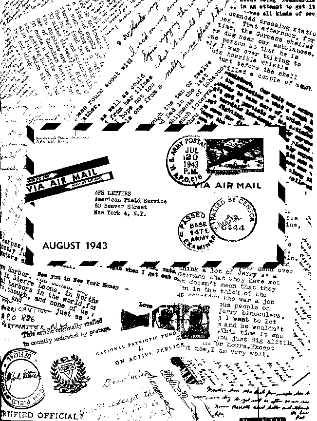 Edited and published at AFS Headquarters, 60 Beaver Streets New York 4. N.Y. under the sponsorship of the families and relatives of the ambulanciers. The relatives and friends contribute the excerpts from the letters. We regret that, due to paper shortage in the Middle East, the overseas Bulletin has not yet been received, so we cannot give you the signed articles usually included.