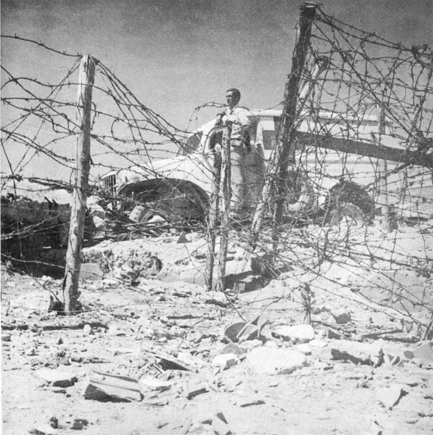 Another whistle and J. and I fell out of the ambulances on our faces forgetting for the moment that we might hit an anti-personnel mine. We followed the corporal who was now pale but still giving instructions. Then the shells came in pairs --- and of course the whistle of the second one which landed a moment later couldn't be heard. Perhaps a dozen shells landed near us before we were out of the mine field. I was just plain petrified and was just wondering where I'd get hit.. Here at last was a use for the tin hats we'd carried for over 3,000 miles --- --but they were still tied to our front bumper as always.