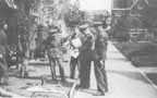 Three of the ambulance drivers use a day off to visit a bazaar in India. A group of AFS men set off on a conditioning march across the Indian plains.