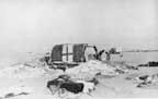 That started him off on the "if your number's up" routine. All these guys that have been thru a lot of action have this phobia. Well, the corporal headed right down the bank to the river bed and J. and I followed in his footsteps, and I don't mean followed an inch from his footsteps, we followed in them. On reaching the car, whose front end was completely ruined, we climbed in to see about the tools and to try and calm down a little.