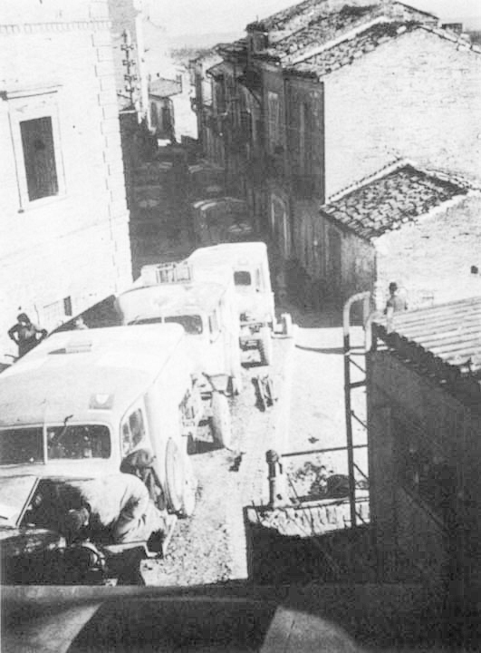 "Here's the low down on a 250 mile trip in an AFS convoy in Italy. Four days before we left we had a grand meeting of the platoon. Big-wigs from HQ were on the spot to break the news: we had a long trip ahead of us. It was secretive beyond measure. Cars had to be spruced up as never before to lend prestige to the triumphant march of the AFS ---at least some seventy odd cars. What awaited us at the end only the generals as yet knew... Macaroni dinners and 'vino' debauches redoubled in intensity before the obvious 'horrors' of three days in convoy.