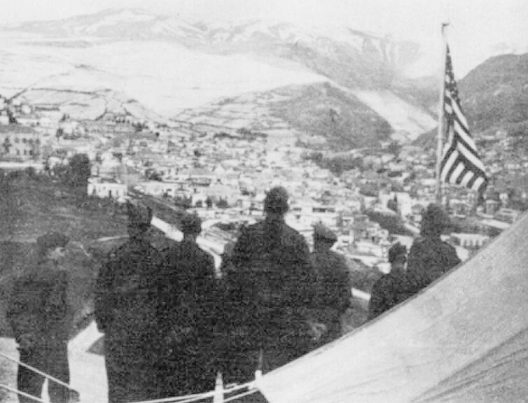 "From our position on the hill we have a beautiful view down, far down, the narrow valley to the higher mountains in the distance. In. one direction we can see the mountain where the Japs are still holding out. At times, when the wind is right, we can hear the big guns firing and the shell explosions.
