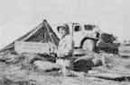 "This country was largely a flat plateau cut with low rolling hills and covered with a sparse growth of brush and small scrawny looking trees. It truly was a dismal and depressing sight. There were very few towns in this areas and we saw few people. Well, smack-dab in the center of this waste we came upon a large town, and on a hill a huge building that looked like an apartment house --- It must have had at least a hundred rooms. This, we were told, was the Maharaja's hunting palace, and the area abounded with panthers, tigers, etc. The week before, the rumor said, some American soldiers had shot a sixteen foot tiger and had to pay to the Maharaja a huge fine; as this was his private hunting grounds.