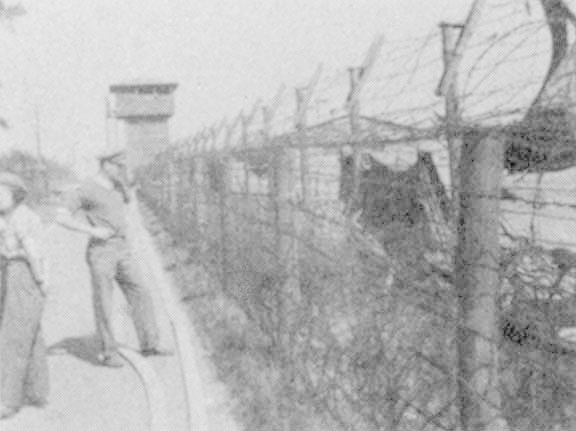 "The prisoners live in shacks about 150 feet by 75 feet. Some of them have double-tiered bunks and some have none at all, Six to eight hundred people live in each hut. One hut had 1250 living in it.