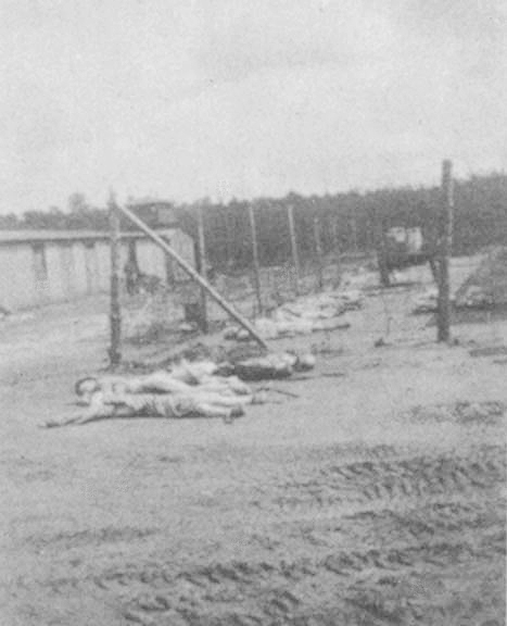 "The camp is set off in the middle of some woods, miles from any towns or cities, and is completely cut off from the outside world. It is surrounded by barbed wire, set out a mile or two from the actual borders of the camp, with signs warning that any trespassers would be shot without hesitation. No care whatsoever was taken of the inmates ---as people died, they were merely shoved out of the windows by the others, if they were strong enough. In many of the buildings, however, the people were too weak to even do that, and the bodies remained in the crowded rooms to rot. These rooms were in many cases so crowded that there was not even room for them to lie down without lying on top of one another. In these rooms many of the dead were stuck to, or had grown to, the bodies of those still alive, and they had to be pulled apart. Now I know this sounds absolutely incredible --- I am not trying to impress you by all these things. I am certainly not exaggerating --- they couldn't be exaggerated, as they couldn't possibly be made any more horrible. I am merely giving a factual account because I think everybody ought to know about this. Previous to this, I had always taken accounts of German atrocities with somewhat of a grain of salt, but now I see they have always been underestimated.