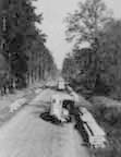 As we went from river to river we saw all the brutal signs of the violence of the action of their crossing. Dead Jerrys and Tommies lying at the side of the road, burning trucks and tanks, dead horses and all the other wastes and signs of battle. The smell was terrific when we passed men who had lain where they were killed for a couple of days and the sight of their bloated faces was terrific."