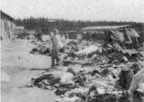 "Of the ones I saw, I would say that only about 20% of them had much chance of living. They look and act like animals --nothing more. Most have lost their minds completely or have sunk to animal level. Most of them just lie and stare, and it is difficult to tell when they are alive and dead. No latrines existed in the entire camp, and although many have been built now by the British, most of the inmates are much too weak to move and consequently just evacuate in their beds where they are lying. The Germans never cleaned up. Although we had been cleaning for almost two weeks when I saw the camp, the barracks were still being shoveled out ( by Germans) and the trash and rubbish pushed in to piles by snow plows and burnt. You can't imagine the horrible sight and smell of a pile of this rubbish coming out of a building, with several dead bodies mixed up in it. It is really impossible to believe all this ---even for me. It all seems like a nightmare.