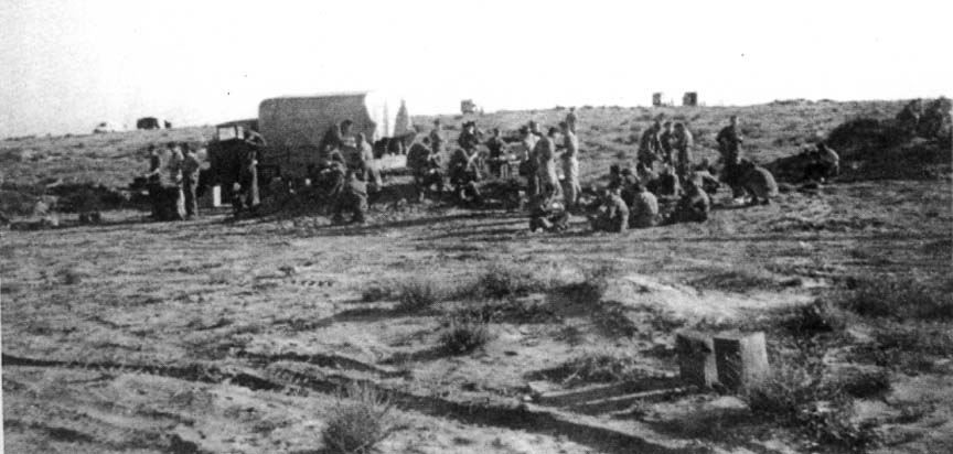 Our first postings were rear echelon operating near Company or Platoon HQ. The not so "lonely and even sands" of the Western Desert confronted us on all sides, dotted with a variety of dispersed vehicles and quarters in trucks or tents. Dispersal of vehicles, and digging slit trenches was standard practice at all times.