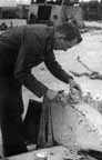 Monday last I was quite "domestic." In the morning I gave my car a complete grease job. Then I washed all my dirty clothes, boiling them in soapy water stirring with a tire tool. After that I washed myself in the hot water left over, and then donned clean clothes. Luxury! The afternoon I sewed buttons on my battledress, mended "undies," and lounged luxuriously feeling completely clean Incidentally I'm quite a wow at sewing on buttons.