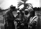 Nevertheless, the war did not seem to rest too heavily upon the simple farmers and artisans of the land. Hundreds of them sprang up like mushrooms along the roads taken by our conquering army. Each seemed well-fed. Each had a cheerful grin. Some were arrayed in all kinds of cast-off "scrounged" army clothes. They could be depended upon to produce a fresh egg or a chicken from the folds of their customary flowing robes, like a magician pulling a rabbit out of a hat: one of the mysteries of life in the African "bush." And they were shrewd in the bargains they made.