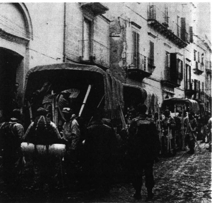 Without delay, all Sections and ambulances were posted to RAP's and ADS's of the 8th Indian Division, and to the many artillery regiments all along the front. One ambulance went to the Airborne Brigade, another to the 1st Indian Reconnaissance Squadron in the mountains. This was Jock's post, most remote of all, at a small mountain village, Civitella, where the only connecting road or track hugged the steep flanks of the Maiella itself.