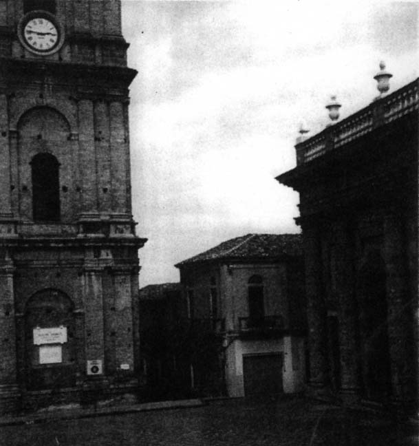 Two blocks east of our HQ villa rose the bell tower of Lanciano's 12th Century Gothic church, "Santa Maria Maggiore." This was the highest point in Lanciano, and had been used to advantage for observation by both sides. Via Garibaldi continued straight and narrow to the east to terminate in remnants of still standing medieval gates at the end of the escarpment. By contrast, the narrow roads leading down into the city were a labyrinthian maze squeezed between stout stone structures, some a roads" just steps built into steep inclines and all leading to the central Piazza and the "new" city. Here larger roads could handle military transport; larger buildings were converted into storage depots, work shops, field hospitals.