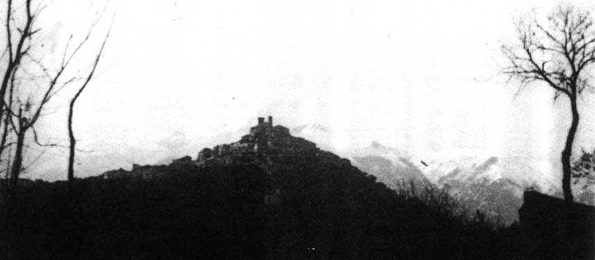 Civitella was one of a series of mountain villages within Jock's purview, including Fara San Martino near Civitella and Lama dei Peligni about 3 miles to the south. These and other villages had the misfortune to be built along the one roadway skirting the very mountain mass itself from the southern east-west passes below the Sangro all the way to the Pescara River and road to Rome on the north, and subject to German demolition. Jock's caption on Civitella reads: