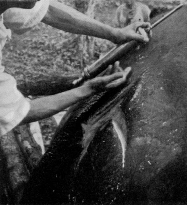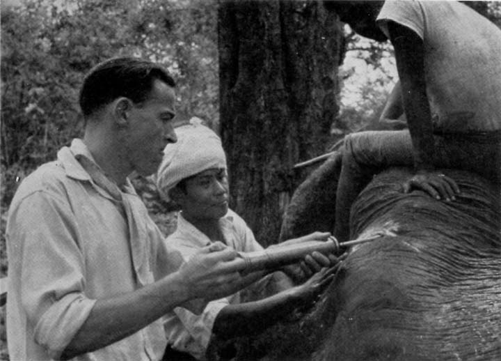 Veterinary treatment of the disease in those days was amateur indeed, and I was working in the dark in more senses than one, as I started operations on a prostrate elephant by the light of a bamboo fire kept stoked by three Burmans.