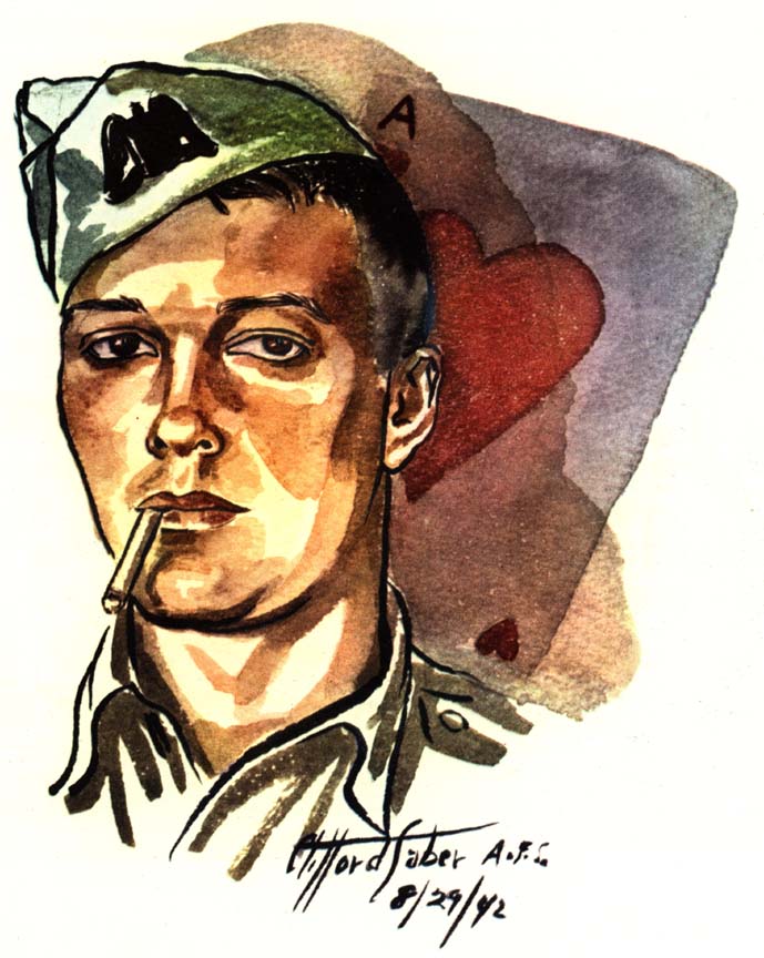 Typical were Quartermaster Sergeant Lionel White and Staff Sergeant Reginald Jenson of the 3rd Light Field Ambulance Unit while we were attached to their outfit. To us, they were Whitey and Baron and they became part of the coffee-drinking Kids, participating in our poker-game cutups and being initiated into baseball. To pinpoint their personalities would be to say Whitey resembled Clark Gable and Baron, James Cagney. I painted both of them.