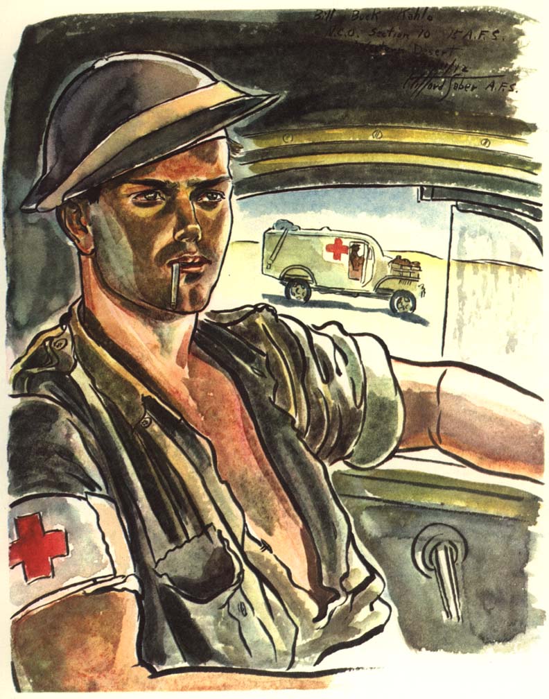"Babe" --- John Lund, another New Englander, now president of an envelope company, an esthetic coffee-house player. Halfway through the mad LFA flight at Agheila, he turned back into the shell fire with the major of the unit, recovered a broken-down staff car, chained it to his ambulance, and towed it to safety.