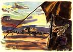 General Montgomery had informed all members of the press of his plans and predictions. He also did this with his men in the field. The battle of El Alamein was a good six weeks off. Upon seeing my completed convoy paintings, the project which we had discussed back in New York with Bill Chessman, art director, and William Ludlow Chenery, editor of Collier's magazine, Gervasi and Reynolds proposed an assignment which would include my services during the long wait ahead. The object was a six weeks' flying tour retracing the steps of Lawrence of Arabia in World War I. I was to record in paint the Arab leaders who worked with Colonel Lawrence or their heirs and act as an interpreter. This would all be integrated with the writings of either one of them.