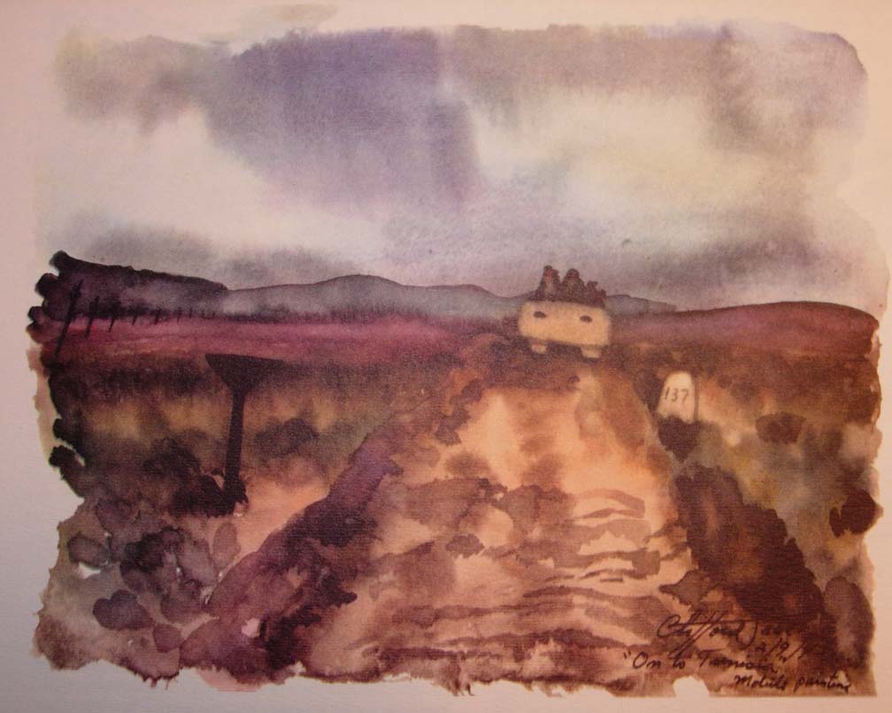 When the fury of the storm shifted away from in front of us, we closed the windshield. I started to paint again in the sandstorm, protected by the windows of the ambulance. It was an exciting mental stimulus which eliminated the strain of the storm's impact and the boring time of passing through it.