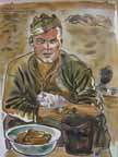 Although we had another air alert, I finished the painting and did a bonus picture for myself for sticking around the gun during all the air activity that was going on. It was a portrait of Sergeant in Command Cyril Owen, the only survivor of this gun's original crew.