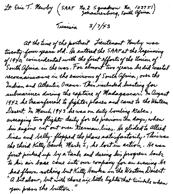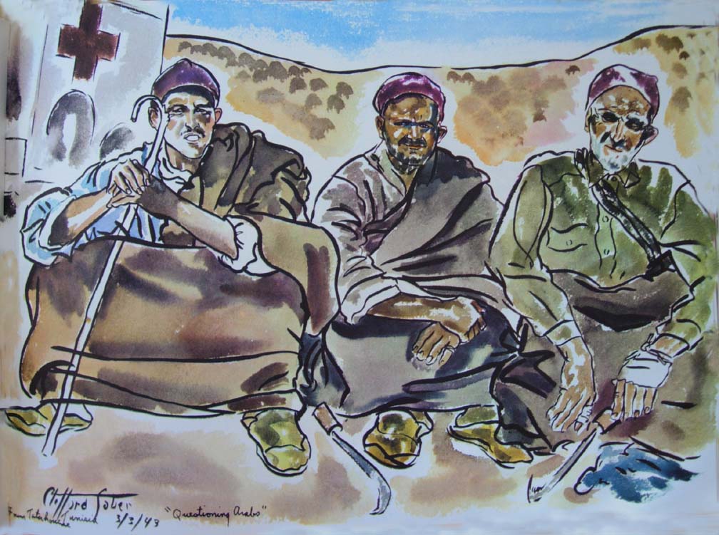 One painting in particular, "The Sinking of the Wasp," caught my eye and shivered my being with its intense dramatic depiction and draftsmanship. The inferno of horror on this aircraft had personal significance for me at the time for I knew its flight-deck officer Stuart Frost. It had even more significance for me later on when I chanced to meet its artist, Tom Lea, in Algiers, and we talked away about art into the wee hours of the morning. His enthusiasm for life was like an atomic generator. He was on his way to China to paint Chiang Kai Shek, and as he was short of some good water-color paper I gave him a pad of my own. Years later in reciprocation I received a Texas Stetson from him. Although it was incongruous in New York City, I wore it on many a festive occasion. His switch from painting to writing The Brave Bulls exemplified the enthusiasm that so impressed me on our first meeting. His generosity in writing the foreword to my book is more than gratefully appreciated, for he truly knew the trials and tribulations of war reporting.