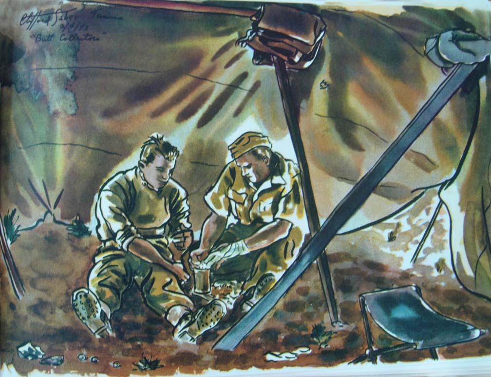 As we lost touch with the outside world for months at a time, mail became more important to everyone than water or food. The words, "Mail call," electrified a unit. A man expecting mail and receiving none soon became curt, fed up, on edge, and really "browned off." When he did receive one small note, he was ready to bear and tackle anything. Books and magazines were shared. I always looked forward to Life magazine for I followed the art work of their war correspondents all over the world.