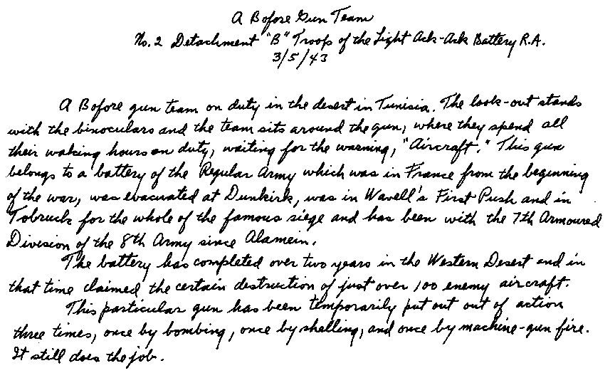 . . . And nothing has stopped us. You have given your families at home and in fact the whole world, good news, and plenty of it every day .... I doubt if our Empire has ever possessed such a magnificent fighting machine as the Eighth Army; you have made your name a household word all over the world ... .I am very proud of the Eighth Army. . . . And now let us get on with the third task. Let us make the enemy face up to and endure a first-class Dunkirk on the beaches of Tunis. The triumphant cry now is: FORWARD TO TUNIS! DRIVE THE ENEMY INTO THE SEA! GENERAL MONTGOMERY'S dispatch to the troops, |
