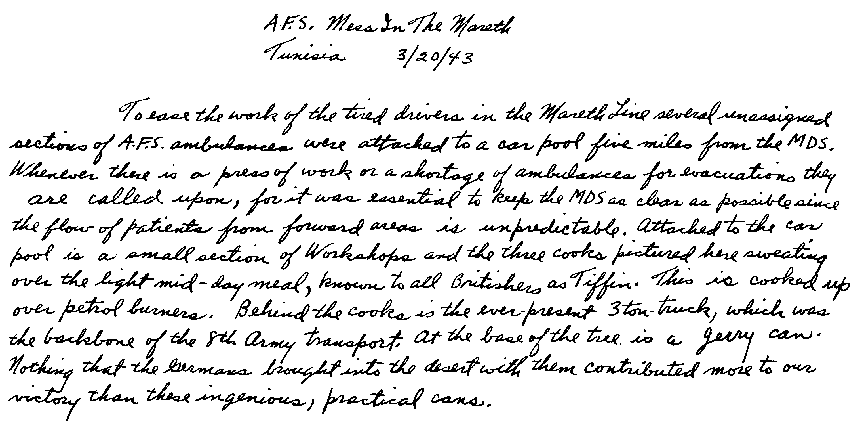 In between runs between the ADS and MDS, Wee Wee and I got to the cooks at the car pool who were also on twenty-four-hour duty. When we were refreshed with bully-beef stew and tea, we were called back for more runs.