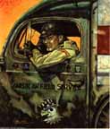 They shared the risks and discomforts of life with the desert army to care for the wounded entirely. They supplied the 8th Army with some 500 ambulance drivers and ambulances. The latter were quite distinctive in that they were the AFS's own American four-wheel-drive Dodges, with the cocky Eagle emblem painted on the doors. They proved their worth when one company alone carried 4,000 patients in 66 ambulances in one month. During the Alamein battle and subsequent weeks the AFS carried 7,000 patients. It did the entire corps work for the 8th Army.
